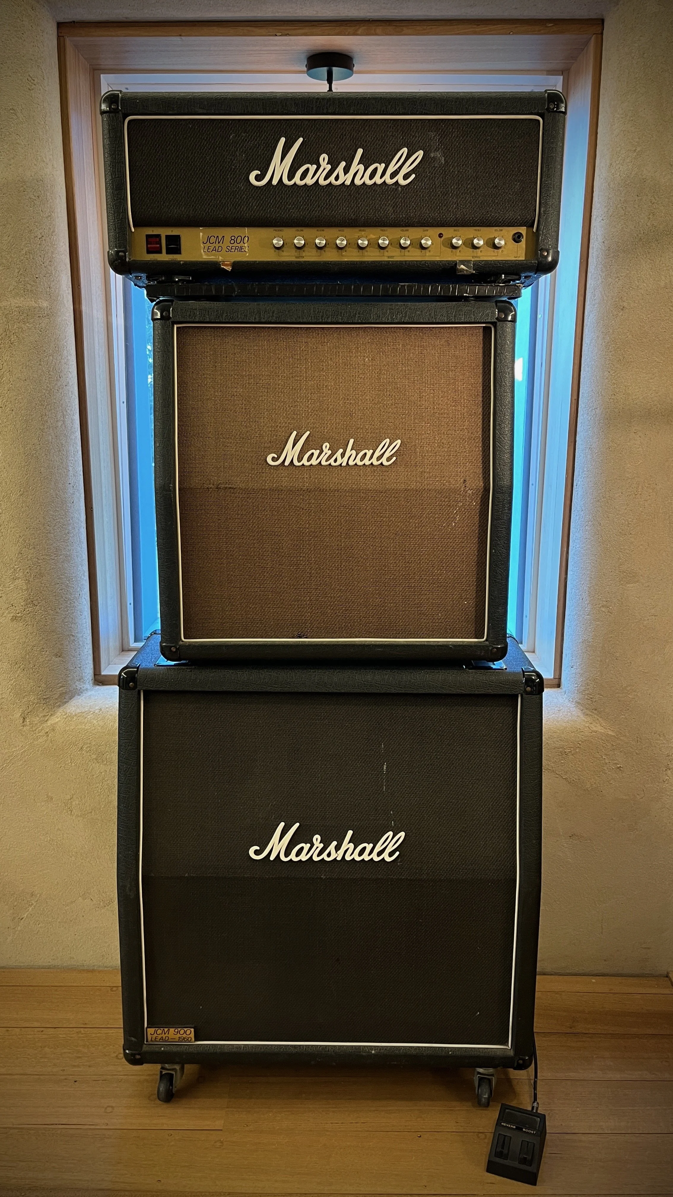 The teetering tower of craziness. Match with either 4 x 10” or 4 x 12” Marshall cabinets (or both…) for feedback heaven.